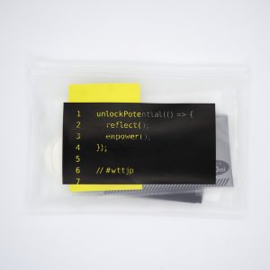 ポーチはIT業界ならではのプログラミングのソースコード風のデザインが大好評だったそうです。