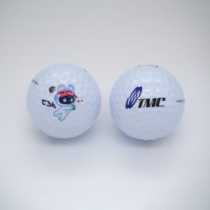 ゴルフボールへ企業ロゴと創立60周年を記念して作成したマスコットキャラクターの印刷をお願いしました。