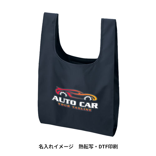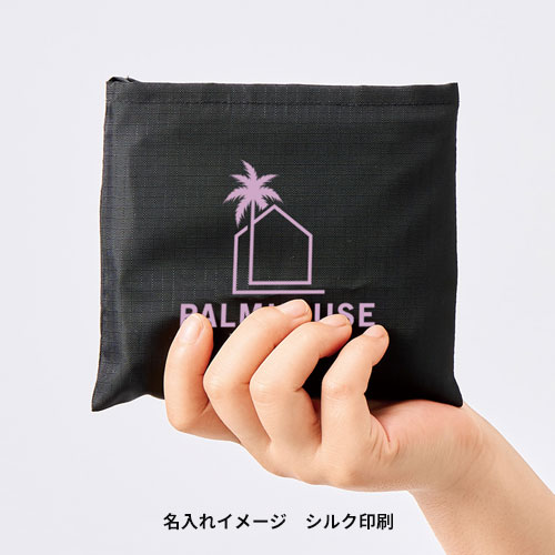 バッグ本体をポケットの中に収めるかたちで収納。使用時にはポケットとしてカードや鍵などの小物収納に便利です。ポケット部分にも名入れができるので、収納時にもロゴやデザインでアピールできます。