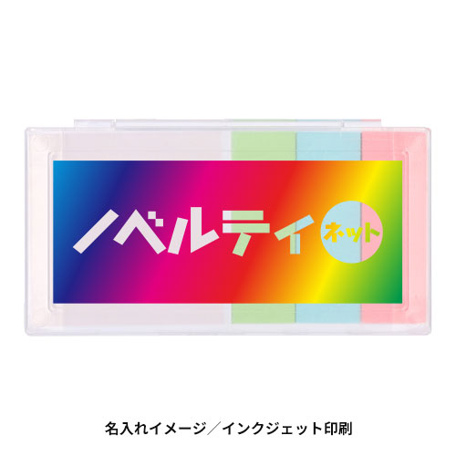 貼ってはがせるふせん4種のセット。プラスチックの丈夫なケースに入っているので、カバンやペンケースの中でも散らばらずに使いやすいです。