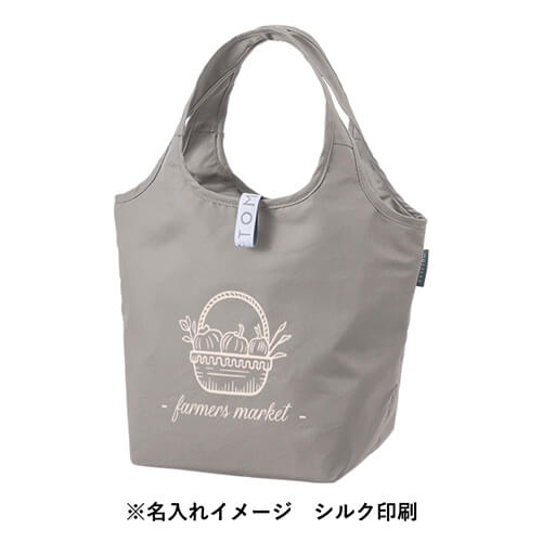 内側には保冷剤を収納できるメッシュポケットが付いており、鮮度が気になる生鮮食品の持ち運びも安心です。底マチ部分には芯材を入れているため、形が崩れにくく中がしっかりと広がるマルシェバッグ仕様。お弁当や卵などの食品も安定して入れることができます。使用後はゴムでくるりとまとめるだけで、コンパクトに折りたたみが可能です。