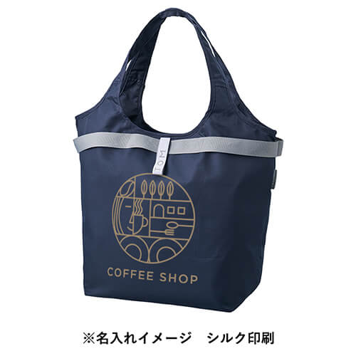 内側には保冷剤用メッシュポケットが付いていて、夏場や生鮮食品の持ち歩きにも安心なクーラーバッグとして活躍します。使い終わった後はゴムでくるりとコンパクトに折りたたみが可能で、カバンの中でもかさばりません。