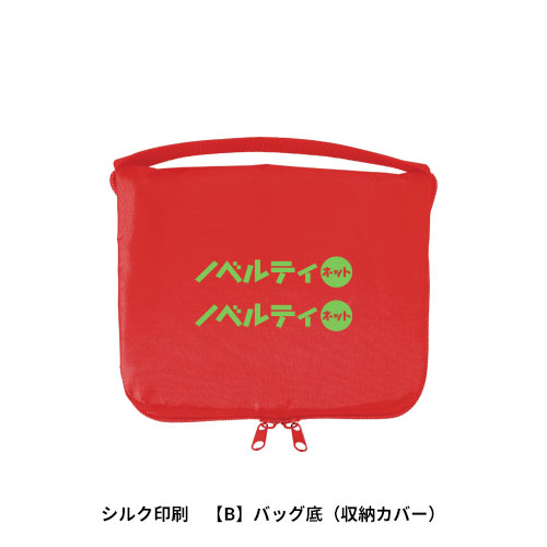 バッグの側面部分と折りたたんで収納した時の外側(バッグの底面)の2ヶ所にシルク印刷が可能です。