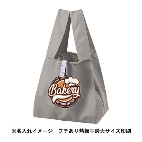 使用後はゴムでくるりとコンパクトに折りたたみが可能で、かばんの中でもかさばらずに持ち歩けます。食料品店向けのノベルティや記念品としても幅広くご提案いただけます。