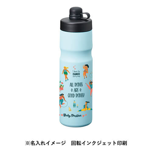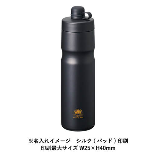 ジムなどでの激しいワークアウト後の喉を潤す冷たいドリンクや、サウナでの外気浴中に必要な水分を最適な温度のまま長時間キープできます。ボトルの側面には単色からフルカラーまで、広範囲にわたるぐるっと一周の印刷が可能なのも嬉しいポイントです。