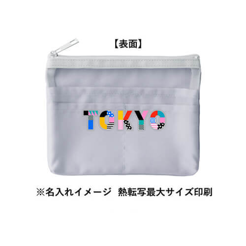 らくらく仕分けポーチ(S)は、5つの仕分けポケットで小物を整理できる機能派ポーチです。落ち着いたカラーで使う人を選ばず、表面のメッシュ部へのフルカラー印刷や裏面の名入れにも対応しています。