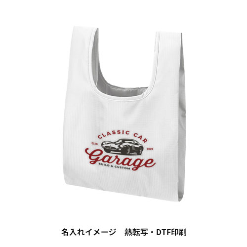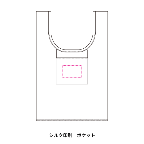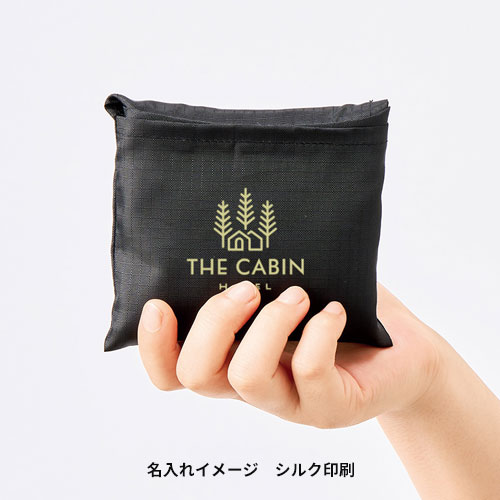 バッグ本体をポケットの中に収めるかたちで収納。使用時にはミニポケットとしてカードや鍵などの小物収納に便利です。ポケット部分にも名入れができるので、収納時にもロゴやデザインでアピールできます。