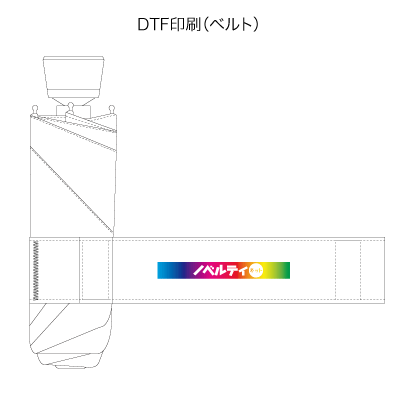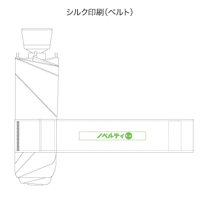 傘本体のパネル部分に加え、傘袋やベルト部分への名入れが可能です。特にベルトは名入れスペースを広く確保した専用設計となっており、ロゴや社名を効果的にアピールできます。