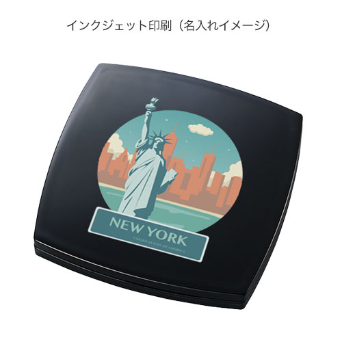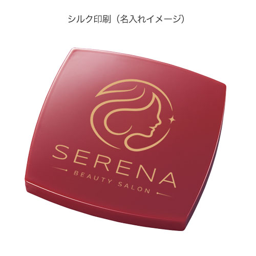 ロゴが映える光沢感。拡大鏡付きスリムコンパクトミラー