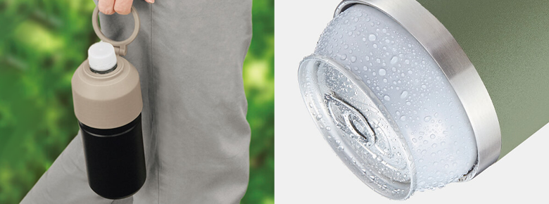 保冷缶ホルダー/保冷ボトルホルダーは、缶飲料やペットボトル飲料をそのまま入れて冷たさをキープする便利アイテムです。真空断熱構造のものが多く、手軽に中身を入れ替えて使えるので、特にアウトドアシーンで大人気のアイテムです。缶やボトルの結露が直接手に触れないのもポイント。記念品ノベルティにもよく選ばれているアイテムです。