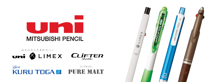 日本の文具メーカー三菱鉛筆。ジェットストリーム以外にも人気シリーズも一部ご紹介。石灰石から生まれた「減プラボールペン」ユニ ライメックス。厚みのある部分にもしっかり挟めるクリップが特徴の油性ボールペン「クリフター」。芯が回ってトガりつづけるシャープペン「クルトガシリーズ」。ウイスキー樽として使用されていたオーク材をボールペン素材にした「ピュアモルト」。