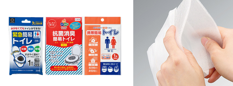 災害時の断水などでトイレが使えないときに持っておきたい簡易トイレ/携帯トイレ/非常用トイレ。防災グッズの新定番です。また簡易トイレがあれば渋滞時の緊急事態にもひと安心。車関係やトラベル関連のノベルティにもおすすめです。