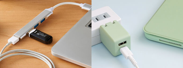 データの移動や給電・充電のためにガジェット同士の接続に使用するケーブル、ポート、充電アダプタ、コネクタ…etc.。企業ノベルティでも人気のあるアイテムです。業務でPCを使う職種の方にとっては必須アイテムなので、入社記念ノベルティや新社会人向けノベルティにもおすすめです。