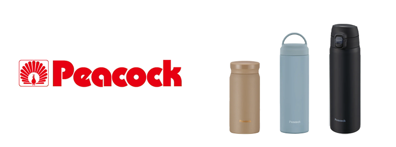 日本のボトルメーカー「ピーコック魔法瓶」。ピーコックのボトルは機能性の高い真空断熱技術でノベルティでも大人気です。