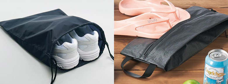 スポーツ系&部活系ノベルティで定番のシューズバッグ/シューズケース。トレーニングシューズやスパイクの収納にチームエンブレム等を入れたシューズバッグはいかがでしょう?大定番のシンプルな巾着袋タイプはシューズの収納以外にも幅広く使えます。