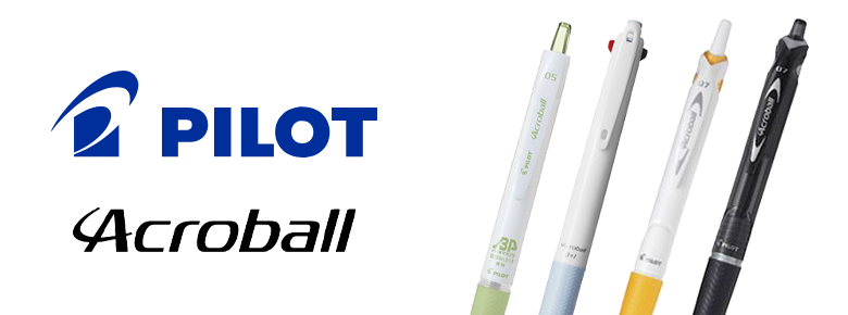 日本の文具メーカーPILOTのアクロボールシリーズ。油性ボールペンながら水性に近いサラサラなインキでなめらかな書き味が特長です。そのアクロボールシリーズの中でも白軸タイプは名入れに最適。フルカラー印刷も可能です。