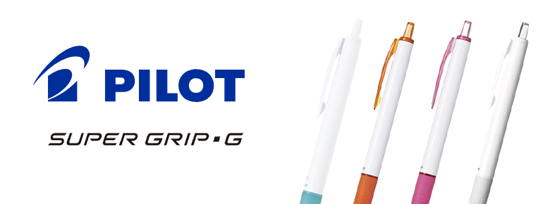 日本の文具メーカーPILOTのスーパーグリップG ノック式シリーズ。名入れボールペンの定番シリーズの1つです。長時間使用に適したしっかり握れるグリップ。白軸はフルカラー名入れに適しています。