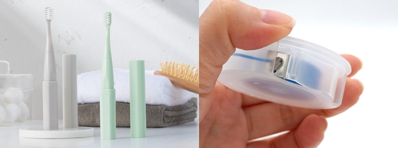 歯ブラシやデンタルフロスなどのデンタルケアグッズはノベルティでも大人気。オリジナルグッズとして制作されるパターンも多いです。もうひとつの定番としては、旅行関連やホテルなどの宿泊施設でのアメニティグッズ。ホテルロゴを入れたグッズは単なるアメニティとしてだけでなく、ちょっとしたお土産としても喜ばれています。
