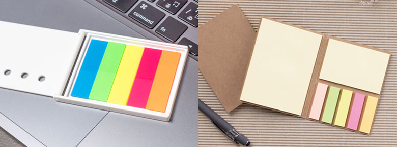 ちょっとしたメモや注意書きを書き込んでノートやディスプレイなどいろんな場所に貼ることができる付箋(ふせん)。仕事でも勉強でもよく使う文房具ですよね。たくさん書き込める大きなサイズのものや、カラフルなタイプ、半透明でマーカー代わりにも使えるタイプもあります。また全面オリジナルデザインでつくれるふせんセットで特別感のあるグッズ制作もいかかがでしょうか!