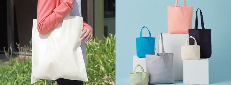 コットン(綿)素材で作られたバッグです。天然素材ならではのナチュラルな風合いが魅力。同じコットンでもキャンバス生地は厚めで丈夫、シーチング生地は薄手で軽いのが特徴です。用途に合わせて生地の厚さを考慮しましょう。カラー展開が豊富な商品もあるので、ブランドカラーやチームカラーに合わせたノベルティが作りやすいのもポイントです。またコットン100%タイプ以外にも異素材がブレンドされていたり、組み合わせたタイプもあります。